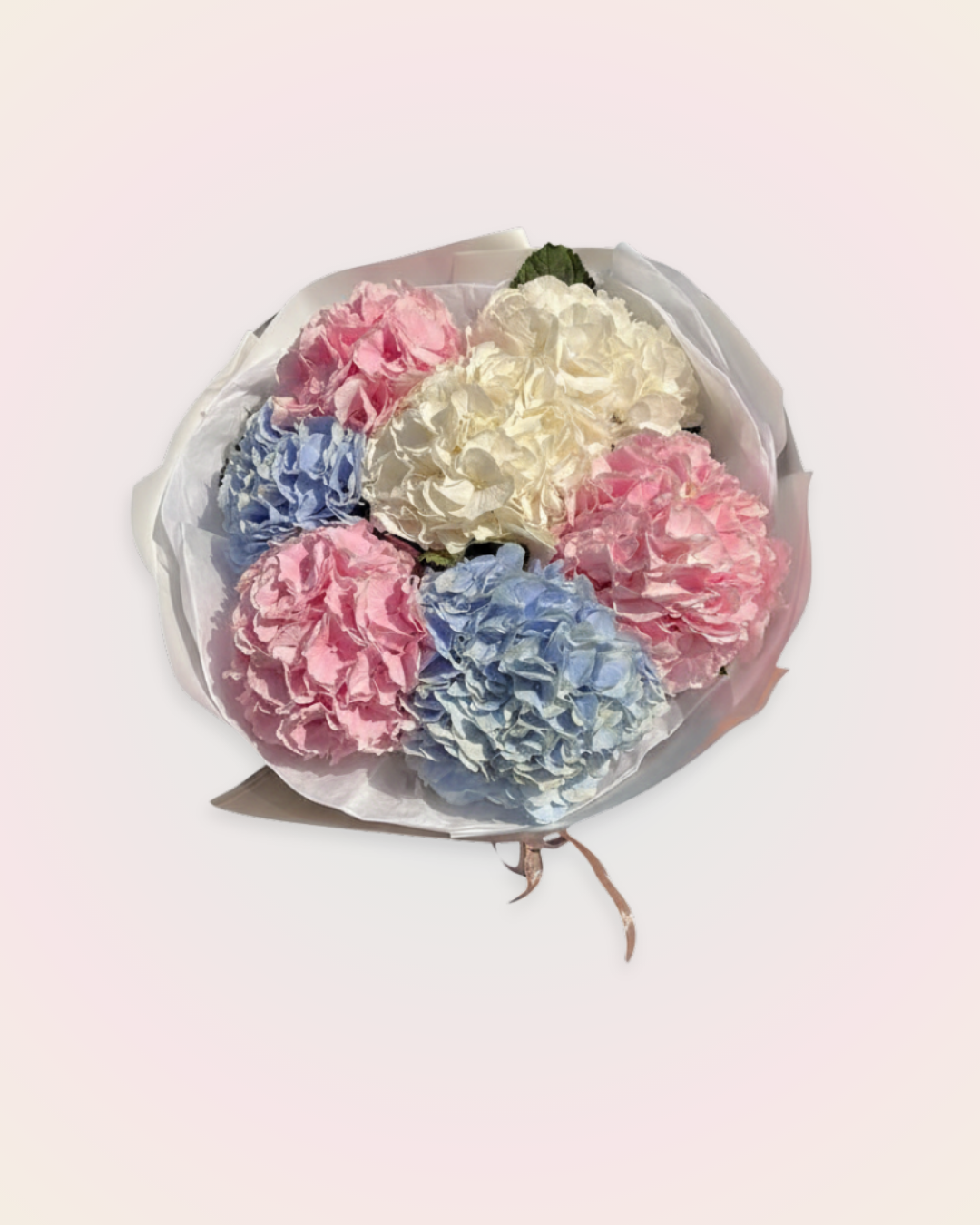 3 Pink Hydrangea. 2 White Hydrangea. 2 Blue Hydrangea.